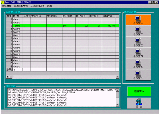 為了突破傳統(tǒng)電話會(huì)議系統(tǒng)的功能局限性,降低采用可視電話會(huì)議系統(tǒng)的高昻成本,本公司采用先進(jìn)的CTI技術(shù)和設(shè)備,推出了SmarTalk Conference電話會(huì)議系統(tǒng),具有超強(qiáng)的會(huì)議能力(同時(shí)可建立多個(gè)會(huì)議,每個(gè)會(huì)議最多同時(shí)可以設(shè)60個(gè)全功能會(huì)議座席,會(huì)議語(yǔ)音效果清晰流暢),并且利用計(jì)算機(jī)控制技術(shù)使操作變得簡(jiǎn)捷、方便,得到用戶一致的好評(píng)。同時(shí)用戶可以使用普通電話終端(包括固定電話和移動(dòng)電話)進(jìn)入會(huì)議,使用本系統(tǒng)的企業(yè)用戶不需要專用的中心會(huì)議室,參加會(huì)議的人員可以分布在任一地點(diǎn),極大地方便了會(huì)議的召開。