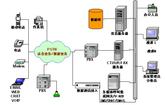 - 采用國內(nèi)外高性能程控交換機(jī),具有標(biāo)準(zhǔn)CTI接口。