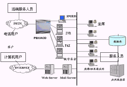 呼叫中心是伴隨著激烈的市場競爭和企業(yè)成功的經(jīng)營理念而生,既低端的價格競爭向高端的服務競爭以及對企業(yè)核心客戶的保持。它融合了傳統(tǒng)的公共電話網(wǎng)PSTN,計算機網(wǎng)絡,以及數(shù)據(jù)庫存儲技術(shù)和自動語音應答IVR等技術(shù),將語音與數(shù)據(jù)資源有效的結(jié)合,為企業(yè)在技術(shù)上保證核心客戶的高忠誠度打下了堅實的基礎(chǔ)。