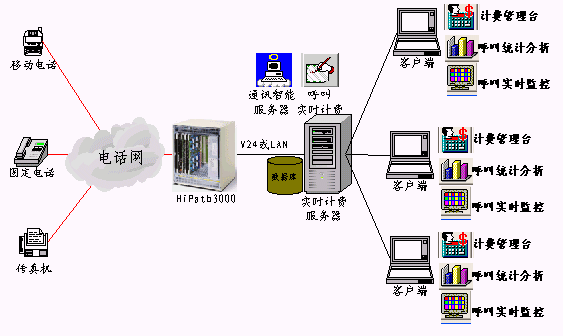 北京商路通信息技術(shù)有限公司基于CTI技術(shù),在SIEMENS HiPath 3000上開(kāi)發(fā)成功實(shí)時(shí)計(jì)費(fèi)系統(tǒng)。商路通實(shí)時(shí)計(jì)費(fèi)系統(tǒng)最大限度的滿足了用戶在通信管理實(shí)時(shí)性上的需求,是目前功能最強(qiáng)大、技術(shù)最領(lǐng)先的計(jì)費(fèi)系統(tǒng)。