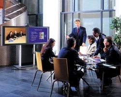 會議系統(tǒng)的組成非常簡單,每個會場安放一臺視頻會議終端,終端接上電視機(jī)作為回顯設(shè)備、接上網(wǎng)絡(luò)作為傳輸媒介就可以了。一臺終端通常有一臺核心編解碼器、一個攝像頭,一個全向麥克風(fēng)以及一個遙控器。核心編解碼將攝像頭和麥克風(fēng)輸入的圖像及聲音編碼通過網(wǎng)絡(luò)傳走,同時將網(wǎng)絡(luò)傳來的數(shù)據(jù)解碼后將圖像和聲音還原到電視機(jī)和音響上,即實現(xiàn)了與遠(yuǎn)端的實時交互。終端通過呼叫IP地址或ISDN號碼進(jìn)行連接(專線無需撥號)。但在有三點會場就必須采用MCU(視頻會議多點控制單元)進(jìn)行管理。
