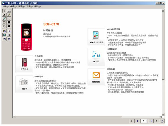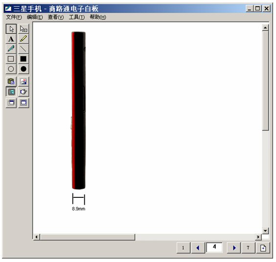 坐席進(jìn)入富媒體知識庫,調(diào)出三星手機(jī),啟動(dòng)電子白板,將這個(gè)畫面推送給客戶。