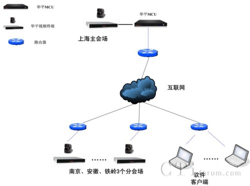 在系統(tǒng)的架設(shè)上,華平為上航特種車公司在雙線托管機房架設(shè)了一臺MCU服務(wù)器,用雙線機制解決電信、網(wǎng)通的網(wǎng)絡(luò)瓶頸問題,同時實現(xiàn)視音頻的合成和轉(zhuǎn)發(fā);在上海、南京、安徽、鐵嶺4個會議室各部署一臺標清硬件終端,達到標清品質(zhì)的視頻通訊應(yīng)用;同時針對移動參會用戶,華平為其配置了4個點的軟件客戶端,使上航特種車公司相關(guān)領(lǐng)導(dǎo)和員工在出差情況下也可以通過筆記本電腦參會。此系統(tǒng)設(shè)計不僅具備良好的視音頻通訊效果,同時還具備強大的數(shù)據(jù)輔助功能,可滿足會議、培訓(xùn)甚至是遠程協(xié)作的應(yīng)用需求。