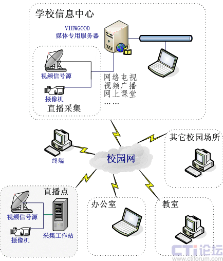 - 教育電視臺(tái):可以通過教育節(jié)目輪播或從教育電視臺(tái)采集節(jié)目,建立自己的網(wǎng)絡(luò)虛擬教育電視臺(tái)。