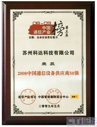 2009中國通信產(chǎn)業(yè)榜 科達(dá)入圍“2008中國通信設(shè)備供應(yīng)商50強”
