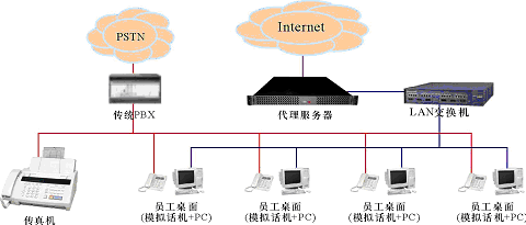 。。某中小企業(yè),無分支機構(gòu),現(xiàn)時有一個由傳統(tǒng)PBX構(gòu)建的電話系統(tǒng)和一個以太局域網(wǎng),兩者相互獨立,局域網(wǎng)通過一臺代理服務器用以太網(wǎng)或ADSL方式接入Internet。企業(yè)的語音通信由電話系統(tǒng)實現(xiàn);員工的日常工作需要使用計算機以及多種局域網(wǎng)和Internet服務(如文件共享、網(wǎng)絡打印、瀏覽網(wǎng)頁、收發(fā)郵件等),這些服務通過局域網(wǎng)提供,目前,在企業(yè)的經(jīng)營管理上還沒有應用相關的業(yè)務系統(tǒng)(如工作流、ERP、CRM等)。