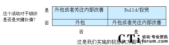 如果這個活動是關鍵任務,而且有時候你有穩(wěn)固的內部資源和已經證明的能力,那么你很可能想保持自建活動,并內部投資其增長。但是,如果這個活動不是那么重要,或者你現(xiàn)在在做的事并沒有做好,那么外包的意義就更大。