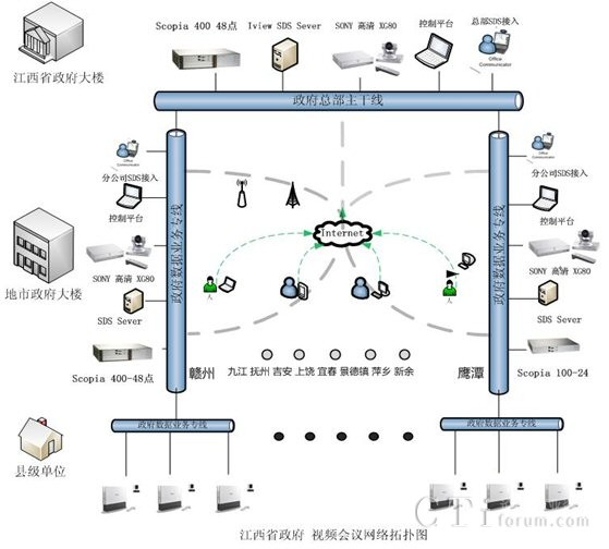 G50等相關(guān)設(shè)備。本套會議電視系統(tǒng)成功地實現(xiàn)了省、設(shè)區(qū)市、縣(區(qū))三級聯(lián)網(wǎng),此項目的部署,同時得到了RADVISION合作伙伴江西省電信公司的大力支持與協(xié)調(diào)。在項目簽約后3個月內(nèi)就完成了貨物調(diào)備、安裝、調(diào)試及測試、培訓等一系列相關(guān)工作,受到了江西省政務(wù)信息網(wǎng)領(lǐng)導們的一致好評。