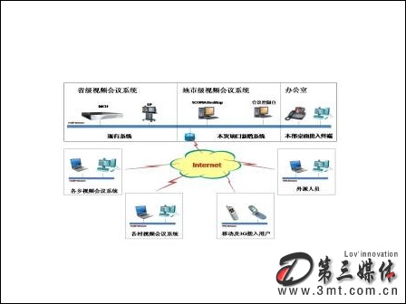 此外,為保證外出領導或員工不會錯過任何一次重要會議,該套系統(tǒng)需要支持與普通電話、手機等語音終端的實時接入,而專網外計算機桌面終端地接入,可保證外出的干部能夠通過普通計算機參加重要會議或培訓。該平臺還要能夠通過升級支持3G技術的接入,從而使整套系統(tǒng)能夠順應未來通訊技術的發(fā)展。