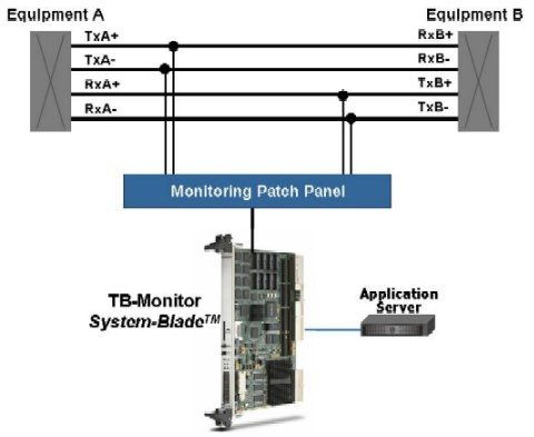 該解決方案由TB監(jiān)測系統(tǒng)刀片(TB-Monitor System-Blade™ ),高密度、高靈活性的監(jiān)測設(shè)備,和監(jiān)測接線面板(Monitoring Patch Panel),為非插入式E1/T1鏈路探測提供高阻隔離,以及TelcoBridges的易于使用的API函數(shù)構(gòu)成。
