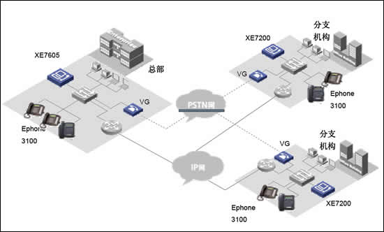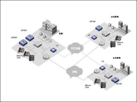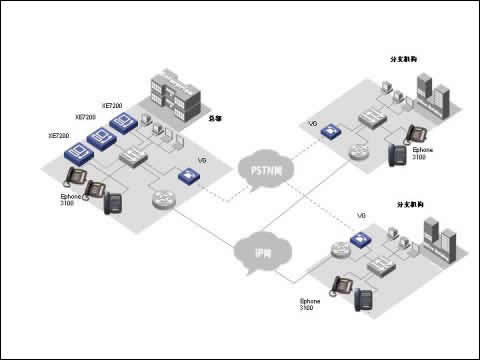 華為三康的XE7000IP語音解決方案是為企業(yè)提供融合的通信解決方案,在同一網(wǎng)絡(luò)上融合語音、數(shù)據(jù)和視頻信息,以滿足其日益增長(zhǎng)的企業(yè)通信的要求從而解決了現(xiàn)代企業(yè)面對(duì)的傳統(tǒng)PBX語音服務(wù)和IP網(wǎng)絡(luò)數(shù)據(jù)服務(wù)分離問題。華為三康的XE7000IP語音解決方案構(gòu)建在企業(yè)現(xiàn)有IP數(shù)據(jù)網(wǎng)絡(luò)之上,以集中式管理方式提供企業(yè)全網(wǎng)范圍內(nèi)的呼叫控制以及管理,業(yè)務(wù)控制和信令分離使得用戶在管理上更加簡(jiǎn)單透明,極大的節(jié)省了日常維護(hù)費(fèi)用和降低了維護(hù)難度。并使得客戶可以在任意地方實(shí)現(xiàn)IP語音數(shù)據(jù)接入,使得企業(yè)分布式辦公的不再因?yàn)槲锢砜臻g隔離而無法實(shí)現(xiàn)。