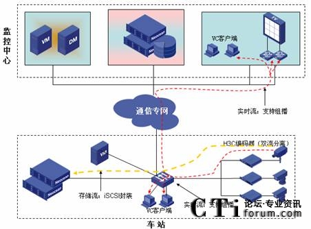 由此可見,視頻監(jiān)控IP化是軌道交通行業(yè)應(yīng)用發(fā)展必然,實(shí)際上,北京、成都、杭州、蘇州等城市新建的地鐵視頻監(jiān)控系統(tǒng),基本上都采用了IP技術(shù)解決方案。在杭州華三通信技術(shù)有限公司(簡稱:H3C)參與的杭州地鐵1號線、蘇州地鐵1號線等的CCTV項(xiàng)目中,拋棄了傳統(tǒng)的模擬矩陣,采用了H3C iVS IP視頻監(jiān)控解決方案,在控制中心與車站都可對前端圖像可以靈活進(jìn)行控制,同時(shí)車站的管理工作站的用戶只能管理本站內(nèi)的視頻監(jiān)控圖像和進(jìn)行圖像查詢,在控制中心可以進(jìn)行所有車站的圖像管理。H3C iVS IP視頻監(jiān)控系統(tǒng)支持精確到秒級的高效檢索,當(dāng)出現(xiàn)緊急情況時(shí),車站/控制中心都能夠即時(shí)回放1分鐘之前的事故現(xiàn)場圖像。H3C的方案采用了視頻流和控制流相分離的NGN架構(gòu),視頻流不用經(jīng)過傳統(tǒng)的流媒體服務(wù)器轉(zhuǎn)換,直接由前端編碼器發(fā)起iSCSI流寫入到后端的IP SAN磁盤陣列中,滿足端到端的“0”瓶頸視頻圖像存儲。在視頻監(jiān)控系統(tǒng)中的任何設(shè)備出現(xiàn)意外事件時(shí)如設(shè)備故障、設(shè)備掉電等,可以保證掉電之前的歷史圖像完整性,為分析事故原因提供依據(jù)。