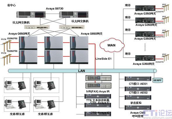 為提供高可靠性,該方案在S8730服務器、G650網(wǎng)關、IVR、CTI接口、CTI系統(tǒng)等幾個部份設計了全冗余的部件。S8730一套即為雙服務器,兩套服務器互為備份,對用戶端透明,無縫切換,保證呼叫處理的冗余性。