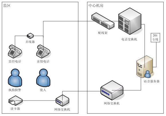 親情電話管理系統(tǒng)在系統(tǒng)設計中充分考慮監(jiān)獄的需求與特點,不但包含了一般親情電話錄音所需的全部功能,而且還融合了獄政管理的功能,整個系統(tǒng)采用集中式方式,在中心機房部署一套親情電話錄音服務器,各個監(jiān)區(qū)監(jiān)控系統(tǒng)利用監(jiān)獄內部的局域網(wǎng)聯(lián)結成一個整體,形成一個能監(jiān)控監(jiān)獄親情電話的全網(wǎng)。這樣即可以在每個監(jiān)區(qū)監(jiān)聽,也可以在監(jiān)獄內部網(wǎng)的任何地方對親情電話進行全程監(jiān)視。該系統(tǒng)能夠完全滿足目前監(jiān)獄的需求,產品性價比遠遠高于市場上其他同類產品。