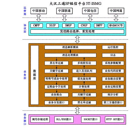 大漢三通短信平臺 CTC-SMS 為上海大漢三通網絡通信有限公司的軟件產品(下面簡稱為 CTC-SMS短信平臺),系統(tǒng)模塊結構如下: