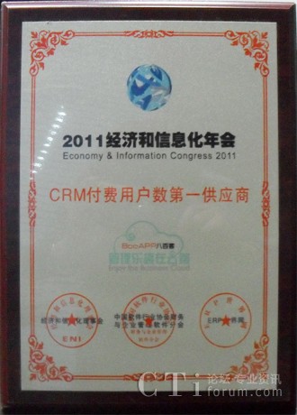 作為全球企業(yè)管理軟件領(lǐng)跑者,八百客參加了此次會(huì)議,并就IT業(yè)戰(zhàn)略性發(fā)展、工業(yè)轉(zhuǎn)型升級(jí)等問題和與會(huì)企業(yè)家進(jìn)行了深入探討,集中、深刻闡釋產(chǎn)業(yè)精髓,洞悉和把握未來發(fā)展方向,尋求最佳的信息化成長模式。年會(huì)期間的招待晚宴穿插各類年度大獎(jiǎng)的頒獎(jiǎng)典禮,讓與會(huì)的政界、學(xué)界、商界等各路貴賓充分交流信息,建立友誼,為達(dá)成長期合作奠定良好的基礎(chǔ)。基于八百客在國內(nèi)CRM領(lǐng)域的優(yōu)秀表現(xiàn),本次年會(huì)特別授予了八百客“CRM付費(fèi)用戶數(shù)第一供應(yīng)商”的大獎(jiǎng)。