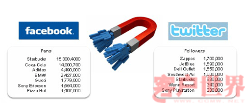 這就是今天的世界,社交媒體的發(fā)展速度和對我們生活的影響,已經(jīng)遠遠超出我們的想象,根據(jù)Cone Business in Social Media, 2009的統(tǒng)計,在美國已有93%的消費者認為企業(yè)在社交媒體上應該擁有代表其企業(yè)的用戶,而60%的消費者已經(jīng)開始在社交媒體上與企業(yè)進行交互。根據(jù)Nielsen, Global Faces & Networked Places, 2009的統(tǒng)計,在美國超過1/2的人,每天花在社交媒體上時間,已經(jīng)超過花在收發(fā)郵件的時間,而在Facebook注冊的新用戶,增長最快的是35歲以上的人群,而不再是我們過去想象的只有年輕人,下一代才愿意在Facebook這樣的社交媒體上進行交流。如下圖說示,根據(jù)2010年10月統(tǒng)計的結果,在Facebook上Starbucks已有超過1500萬的粉絲,而Coca-Cola有超過1400萬的粉絲,這意味著無論是Starbucks還是Coca-Cola,他們在Facebook上的任何舉動,都可以讓超過1400萬人瞬間知道,并可以對企業(yè)的舉動做評價或轉發(fā)。