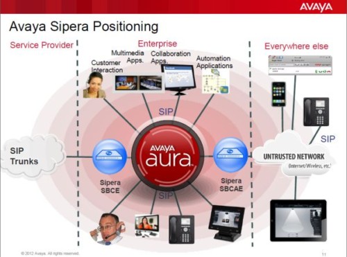 收購Sipera,Avaya獲得了適用于會話啟動協(xié)議(SIP)中繼的企業(yè)級會話邊界控制技術,從而增強Avaya統(tǒng)一通信產(chǎn)品線的實力,并為客戶和渠道合作伙伴提供更大的靈活性,幫助他們實現(xiàn)各種安全功能進而創(chuàng)造商業(yè)價值。Sipera開放的、基于標準的解決方案適用于Avaya和非Avaya網(wǎng)絡。Sipera解決方案與Avaya Aura整合后,將能為客戶提供安全的VoIP、SIP中繼、視頻會議、基于云的通信、即時通信以及協(xié)作工具,使客戶能隨時隨地為使用企業(yè)級或消費類設備的員工提供服務。