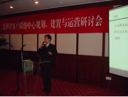 2點(diǎn)整,主持人宣布會(huì)議正式開始。首先是正音科技公司執(zhí)行副總秦裕農(nóng)先生致開幕詞。秦先生從2000多年前的周幽王烽火戲諸侯娓娓道來(lái),一直講到IP技術(shù)在音頻、視頻上的應(yīng)用,為大家生動(dòng)形象地描述了通訊技術(shù)發(fā)展的歷程。在演講的最后,秦先生指出了一個(gè)客戶聯(lián)絡(luò)中心所應(yīng)該具備的特性:"在這個(gè)客戶聯(lián)絡(luò)中心里,客戶應(yīng)該能夠隨時(shí)隨地的通過(guò)電話、傳真、郵件、網(wǎng)絡(luò)電話、文字聊天、web協(xié)同等各種各樣的方式,第一時(shí)間找到企業(yè),解決他們的問(wèn)題;在這個(gè)客戶聯(lián)絡(luò)中心里,企業(yè)能夠廉價(jià)地把分布于全國(guó)各地的服務(wù)資源聯(lián)系起來(lái),進(jìn)行統(tǒng)籌管理,統(tǒng)一為客戶提供服務(wù);在這個(gè)客戶聯(lián)絡(luò)中心里,企業(yè)可以隨時(shí)把一個(gè)空閑的客戶服務(wù)人員調(diào)整為電話銷售人員,而不用去修改復(fù)雜系統(tǒng)設(shè)置;在這個(gè)客戶聯(lián)絡(luò)中心里,任何一個(gè)可以接入互聯(lián)網(wǎng)的員工,不管他身在地球的哪一個(gè)角落,都可以隨時(shí)隨地的接入系統(tǒng),變成一個(gè)坐席,為客戶提供專業(yè)的服務(wù)。"秦先生描述的這個(gè)完美的客戶聯(lián)絡(luò)中心立即博得了陣陣掌聲,同時(shí)也引起了與會(huì)者的極大興趣,如何才能實(shí)現(xiàn)這個(gè)猶如夢(mèng)中的呼叫中心呢?"相信通過(guò)今天的研討會(huì),各位會(huì)得到了一個(gè)滿意的答案",秦先生最后自信的向大家保證。
