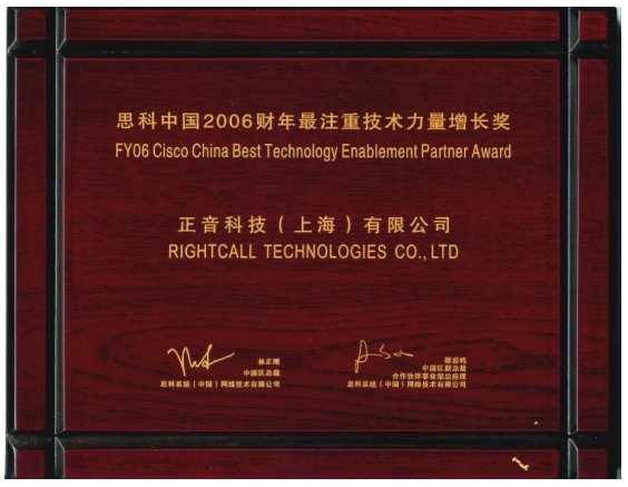 正音科技榮獲“思科中國2006財年最注重技術(shù)力量增長獎”