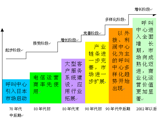 日本市場是全球較為成熟的呼叫中心市場之一,呼叫中心的應(yīng)用遍布各行各業(yè)。在整體呼叫中心行業(yè)產(chǎn)生的市場價值中,由呼叫中心外撥直接產(chǎn)生的占1/4強(qiáng),50%的呼叫中心配備了專用外撥設(shè)備。這說明呼叫中心已完全脫離了服務(wù)窗口的概念,成為了企業(yè)營銷的有力工具,呼叫中心已高度利潤中心化。