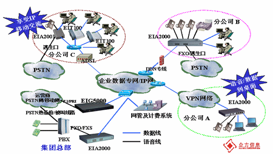 深圳眾方信息的企業(yè)級融合通信解決方案是為已通過Adsl、Isdn、Cable Modem、城域網(wǎng)寬帶等方式接入Internet的企業(yè)用戶或企業(yè)集團(tuán)用戶而量身定做的基于Internet的VoIP應(yīng)用方案,具有投資少、收效快、結(jié)構(gòu)簡單、便于維護(hù)等特點(diǎn)。
