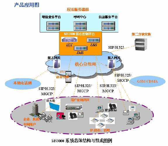 MS3000 IP多業(yè)務通信系統(tǒng)是上海思巴得信息科技有限公司精心打造的面向下一代通信網(wǎng)絡(NGN)的電信級通信系統(tǒng),主要為專網(wǎng)用戶和運營商(虛擬)提供基于IP網(wǎng)的多媒體通信業(yè)務。MS3000將PSTN的可靠性和IP網(wǎng)的靈活性很好的結(jié)合起來,結(jié)合用戶的行業(yè)特點及需求,為用戶量身制定了實現(xiàn)簡單、技術先進、業(yè)務強大、收效顯著及強大可擴展的解決方案,大大提升了業(yè)務提供商的核心競爭力。