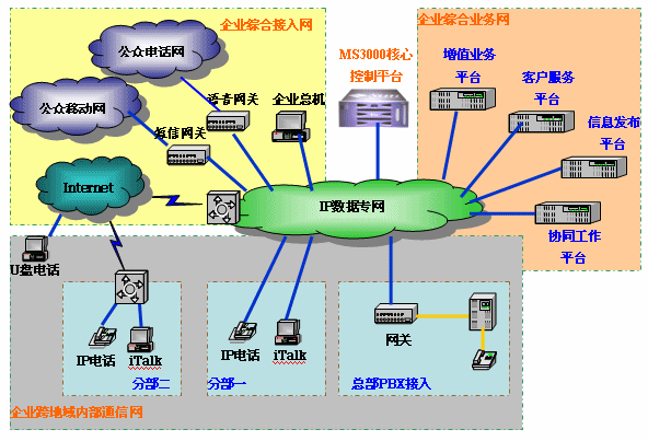 單一的電話通信方式已經(jīng)遠(yuǎn)遠(yuǎn)不能滿足現(xiàn)代企業(yè)(包括行業(yè)、政府機(jī)關(guān))在通信方面的需求,隨著IP網(wǎng)絡(luò)的不斷普及、新的通信技術(shù)的不斷發(fā)展,“多媒體協(xié)同通信”一個(gè)新的通信概念已經(jīng)展現(xiàn)在我們的面前。我們需要跨地域的內(nèi)部電話,我們需要廉價(jià)的IP長途,我們同樣需要通信服務(wù)平臺(tái)、信息發(fā)布平臺(tái),我們還需要工作協(xié)同、信息共享!岸嗝襟w協(xié)同通信”就能滿足我們這些需要。