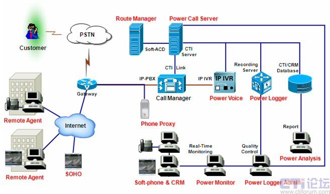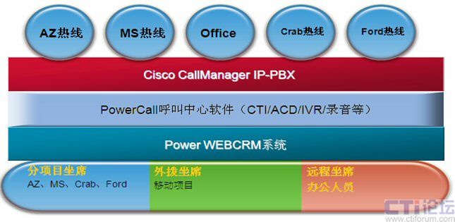 系統(tǒng)采用CISCO CallManager IP-PBX作為語音平臺(tái),PCS提供全套軟件,包括:CTI、排隊(duì)、IP-IVR、錄音和CRM,對MicroCall外包呼叫中心的各項(xiàng)需求都給出了滿意的解決方案。
