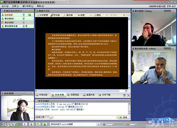 CTI論壇(ctiforum)05月19日消息: 自08年攜手視維Super-V視頻會(huì)議以來(lái),中石油雅安分公司銷(xiāo)售部的日常工作會(huì)議高效及時(shí)地開(kāi)展,尤其是在5.12四川大地震后,工作不但沒(méi)有中斷,而且足不出戶(hù)就可以給上級(jí)領(lǐng)導(dǎo)匯報(bào)工作,與同事交流營(yíng)銷(xiāo)心得。而在以前,只能通過(guò)電話(huà)或者郵件,甚至長(zhǎng)途跋涉聚集到一個(gè)地方舉行會(huì)議,既浪費(fèi)時(shí)間又增加營(yíng)銷(xiāo)成本。這是繼中國(guó)重汽、新加坡協(xié)美集團(tuán)等跨國(guó)集團(tuán)公司倡導(dǎo)信息時(shí)代新?tīng)I(yíng)銷(xiāo)主義,實(shí)現(xiàn)高效運(yùn)營(yíng)的又一典型案例應(yīng)用。