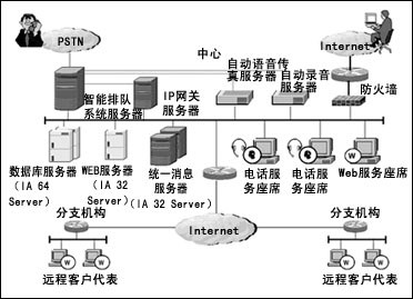 消息處理中心服務(wù)器協(xié)調(diào)客戶服務(wù)中心內(nèi)部各種服務(wù)資源的工作,使客戶來(lái)自電話網(wǎng)的訪問(wèn)和來(lái)自互聯(lián)網(wǎng)的訪問(wèn)能夠按照優(yōu)先級(jí)次序處理;