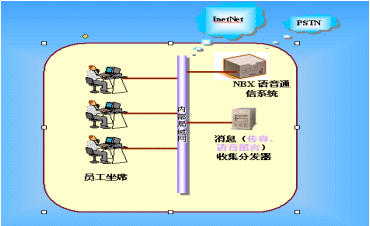 3Com NBX系統(tǒng)構建了一個以個人電子郵箱為最終溝通手段的統(tǒng)一消息平臺。也就是說,我們將來自外界的各種消息(如:傳真、語音留言、Email等)都統(tǒng)一發(fā)送到您的個人電子郵箱中。您可以利用OutLook、Foxmail等通用客戶端郵件軟件接收對應個人的各類信息,并可對各類信息進行相應的處理與編輯。