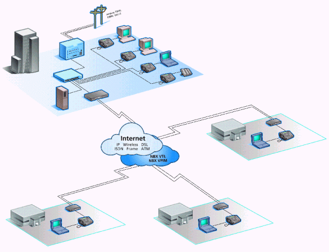 注:企業(yè)架設(shè)NBX通訊系統(tǒng)后,實(shí)現(xiàn)SOHO辦公只需要接入Internet架設(shè)VPN網(wǎng)絡(luò),員工可通過(guò)小區(qū)寬帶接入或ADSL接入即可實(shí)現(xiàn)內(nèi)部通訊就像在企業(yè)內(nèi)部辦公一樣通訊不受任何限制?蛻(hù)來(lái)電時(shí)只需撥打分機(jī)號(hào),無(wú)論員工在任何地點(diǎn)都可接聽(tīng)來(lái)電。企業(yè)可以通過(guò)TCA(通訊助理)軟件給員工發(fā)送公告、組建電話(huà)會(huì)議、短信通知等應(yīng)用。