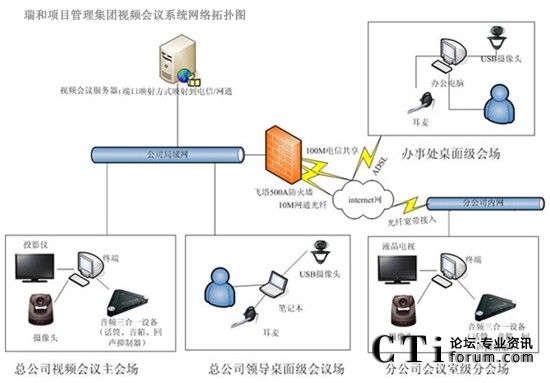 瑞和項目管理集團網(wǎng)絡(luò)基礎(chǔ)建設(shè)以后,各個分支機構(gòu)通過ADSL接入到互聯(lián)網(wǎng),一般每個分支單位大約5人左右,負(fù)責(zé)1個省的業(yè)務(wù)。在現(xiàn)有的網(wǎng)絡(luò)基礎(chǔ)上構(gòu)建了XView迅流視頻系統(tǒng),來滿足各地之間的溝通需求,系統(tǒng)的大范圍使用大大的提高辦公效率,節(jié)省時間及會議成本。隨著各部門遠(yuǎn)程通信需求日益增多,充分發(fā)揮現(xiàn)有網(wǎng)絡(luò)優(yōu)勢,根據(jù)瑞和項目管理集團實際規(guī)模,對XView迅流視頻會議系統(tǒng)進行擴容到全國50個重點分支,改造以后XView迅流視頻會議系統(tǒng)作為公司主要通訊手段。實現(xiàn)各個分公司、辦事處充分應(yīng)用網(wǎng)絡(luò)視頻會議系統(tǒng)進行音頻、視頻和數(shù)據(jù)的多方溝通,提高辦公效率。