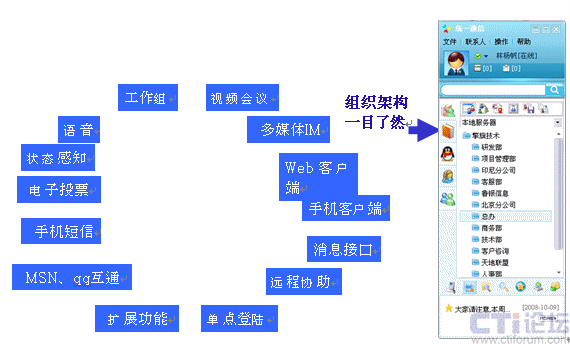 工作組:支持幾千級(jí)用戶同時(shí)在一個(gè)群組即時(shí)溝通,文件,IM,圖片支持。