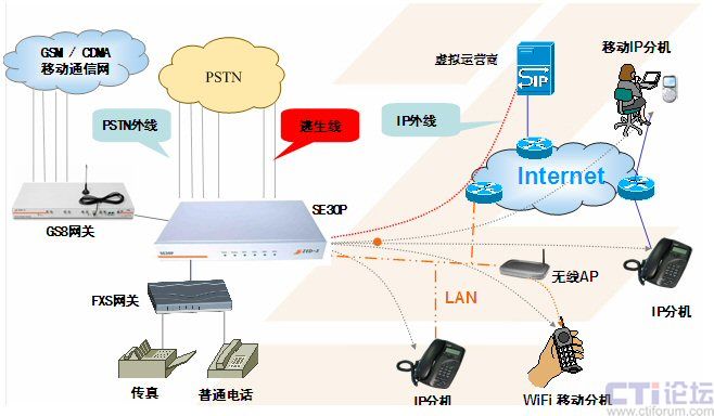 采用SE30系列的IP語音媒體交換機(jī)搭建辦公語音通信平臺,簡化了原先繁雜的語音通信系統(tǒng),可以輕而易舉地集成到用戶現(xiàn)有的網(wǎng)絡(luò)中,節(jié)省了大量的網(wǎng)絡(luò)改造成本及通訊費(fèi)用。部署快捷、管理方便、功能強(qiáng)大、應(yīng)用靈活、降低成本等優(yōu)勢明顯;特別適用于出差、家庭辦公、移動辦公頻繁的現(xiàn)代中小型企業(yè)用戶,極容易實(shí)現(xiàn)多點(diǎn)異地VoIP組網(wǎng)應(yīng)用。