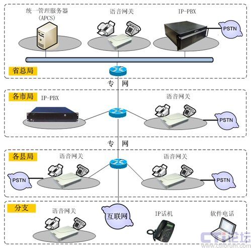摘要:公司Zed-3(捷思銳科技)公司借助工商系統(tǒng)現(xiàn)有的數(shù)據(jù)專網(wǎng),在省局部署大型IP PBX,負(fù)責(zé)省局的分機(jī)注冊以及整套系統(tǒng)的路由規(guī)劃,在各市局部署中型IP PBX,負(fù)責(zé)市、縣局的分機(jī)注冊――充分利用現(xiàn)有資源、降低工作費(fèi)用,擴(kuò)展新業(yè)務(wù),推進(jìn)工商系統(tǒng)通信網(wǎng)絡(luò)的全面提升。