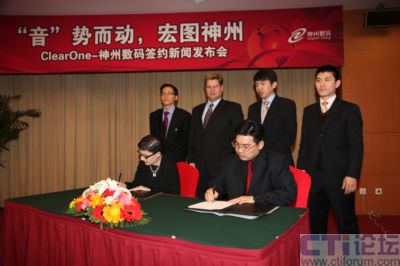 2009年3月10日,國內(nèi)最大的整合IT服務(wù)提供商神州數(shù)碼和國際領(lǐng)先的高端音頻會議系統(tǒng)供應(yīng)商ClearOne在京簽約,共同拓展國內(nèi)音頻會議系統(tǒng)市場,依托ClearOne的技術(shù)、產(chǎn)品、行業(yè)優(yōu)勢和神州數(shù)碼強(qiáng)大的市場號召力及運(yùn)維能力,開創(chuàng)國內(nèi)音頻會議系統(tǒng)領(lǐng)域全新格局,為企業(yè)、教育、培訓(xùn)、醫(yī)療及政府等行業(yè)客戶帶來全新震撼體驗(yàn)!