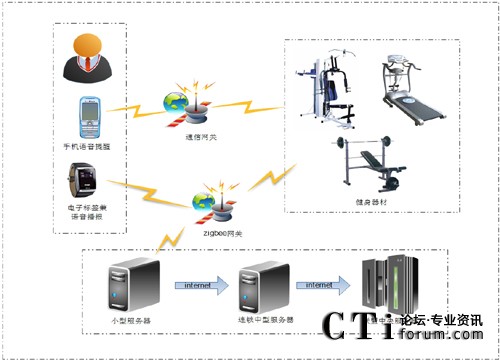 基于物聯(lián)網(wǎng)的綜合信息管理健身系統(tǒng),以下簡稱物聯(lián)網(wǎng)健身系統(tǒng)----IOT Fitness system(IOTFS),本系統(tǒng)是將物聯(lián)網(wǎng)技術(ZIGBEE、GPRS等傳輸方式)以及語音合成技術(TTS)的應用集成于一體。技術方案主要利用無線通訊技術、射頻技術、電子技術、計算機技術、信息網(wǎng)絡技術、傳感技術等高科技術的設備和軟件所組成,以構(gòu)建完善的客戶健身服務系統(tǒng)和健身房運營系統(tǒng)相結(jié)合的統(tǒng)一的信息管理健身系統(tǒng)。