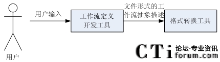 IVR系統(tǒng)的過程定義工具是一個可視化的軟件工具,它主要用于定義工作流模型中各個活動之間的關(guān)系[22]。工作流程過程定義向用戶提供對實(shí)際業(yè)務(wù)處理過程分析、建模的手段。其輸入輸出可以用圖3.2表達(dá):