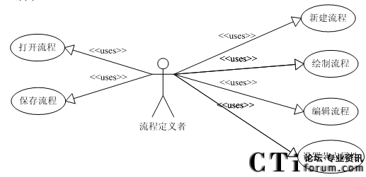 本文設(shè)計(jì)的IVR系統(tǒng)的流程定義工具遵循以上規(guī)則,它被流程定義者使用,其所有的動作都是由流程設(shè)計(jì)人員發(fā)起的,通過對定義工具進(jìn)行了統(tǒng)一建模分析,其使用用例圖如圖3.3所示。