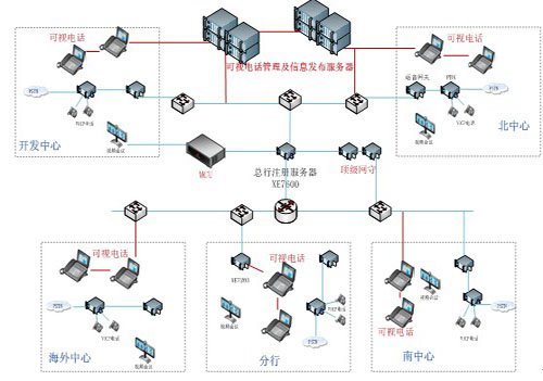 全行所有可視電話(huà)均通過(guò)數(shù)據(jù)中心(北京)新部署的可視電話(huà)管理及信息發(fā)布服務(wù)器進(jìn)行配置、管理及信息展現(xiàn)。