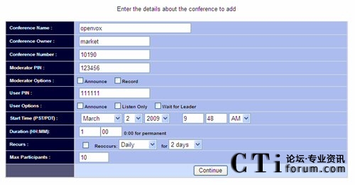 設(shè)定會議基本信息后,點(diǎn)擊下面的Add Conference button,頁面如下: