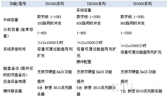 TD3000系列產(chǎn)品,設(shè)計容量為30E1外線(900路并發(fā)),1500座席。TD3000系列在2000系列的技術(shù)上,增加1臺應(yīng)用服務(wù)器,以響應(yīng)更多的座席業(yè)務(wù)處理的請求。