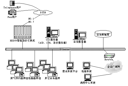 (4) 開發(fā)與維護的問題 煤氣公司已經有一套完整的業(yè)務系統和數據庫系統,呼叫中心的建設必須考慮軟件與原有系統整合的靈活性。要求開發(fā)周期短,系統整合性好,維護方便,便于語音流程的變更,有比較好的升級能力。
