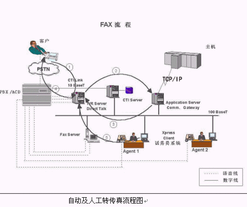 對Call Center而言,也有自動(dòng)傳真和人工傳真兩種服務(wù),下面主要介紹前一種方式的流程。