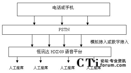 配置恒訊達公司HXD09的PRI或是7號信令接入,系統(tǒng)可自動與交換機通信獲取主叫號碼,話務員數(shù)量根據(jù)需要配置。