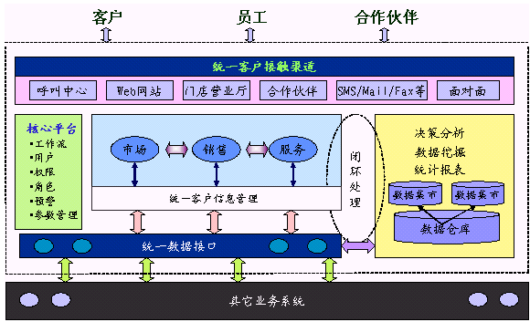 用于保險(xiǎn)公司的銷售、市場營銷、客戶服務(wù)等同客戶有關(guān)的部門,使保險(xiǎn)業(yè)務(wù)處理的流程更加自動(dòng)化和更有效率,從而全面提高保險(xiǎn)公司同客戶的交流能力。運(yùn)營型HollyCRM可以實(shí)現(xiàn)保險(xiǎn)的自動(dòng)銷售管理、時(shí)間管理、工作流的配置與管理、業(yè)務(wù)信息交換等功能;它將保險(xiǎn)的市場、銷售、服務(wù)、支持等全部集成起來,并與保險(xiǎn)的管理與運(yùn)營緊密結(jié)合在一起,形成一個(gè)市場導(dǎo)向、以客戶服務(wù)為中心、工作流程驅(qū)動(dòng)、分析與跟蹤控制的企業(yè)高效市場營銷環(huán)境,以此提高企業(yè)的市場反應(yīng)速度、應(yīng)變能力和市場競爭力。通過保險(xiǎn)CRM系統(tǒng),可將來自保險(xiǎn)核心業(yè)務(wù)系統(tǒng)的客戶交易數(shù)據(jù)和來自于其他客戶渠道獲得的客戶資料信息和服務(wù)信息有效地集成在一起,建立統(tǒng)一的客戶信息中心。