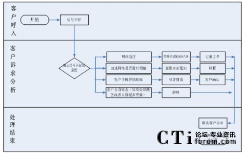 客戶呼入之后,座席人員要做的第一件事情就在IT系統(tǒng)的支持下先去捕獲客戶訴求,不用擔心座席會混淆相似的業(yè)務類型,因為呼叫中心針對典型的業(yè)務訴求會做出非常詳盡的引導流程,相似的或者關聯(lián)的業(yè)務類型在此流程中會體現(xiàn)出來,座席人員可以點擊,快捷地出入于各業(yè)務類型的引導圖,通過比較、判斷,最終定位出客戶真正訴求。例如下文客戶呼入本來想做“撤機”業(yè)務,通過業(yè)務引導圖,最終定位到了客戶的真正訴求,辦理了停機保號業(yè)務或者移機業(yè)務。