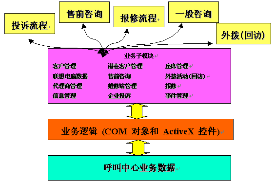 在此中心指導(dǎo)思想之下,惠普咨詢(xún)又結(jié)合聯(lián)想電腦公司的業(yè)務(wù)特點(diǎn),所設(shè)計(jì)的呼叫中心涵蓋了廣泛功能,包括: